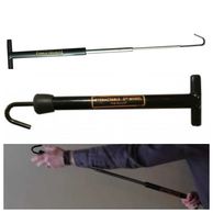 Closed 15 inches, extends to 35 inches. Fits into the drivers door. Weighs 2.5 lbs Powder Coated for durability. Can be Powder Coated to Fleet Colours The handle doubles as a tire thumper, or to break ice off glad hands, frozen 7 ways. The hook pulls 5th wheel pins or to reach and grab your load tarp for flatbeds.